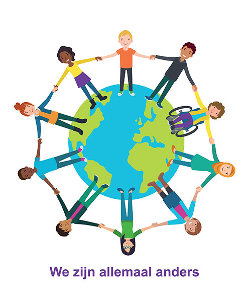 We willen de kinderen leren om te gaan met verschillen van mening en verschillen in gewoontes, leefstijl, levensbeschouwing, leeftijd, sekse en in cultuur. We werken aan acceptatie en waardering ervan. Naast verschillen zijn er ook overeenkomsten. De kinderen leren dat je dit terugziet binnen de eigen families, de klas, de school en de samenleving.